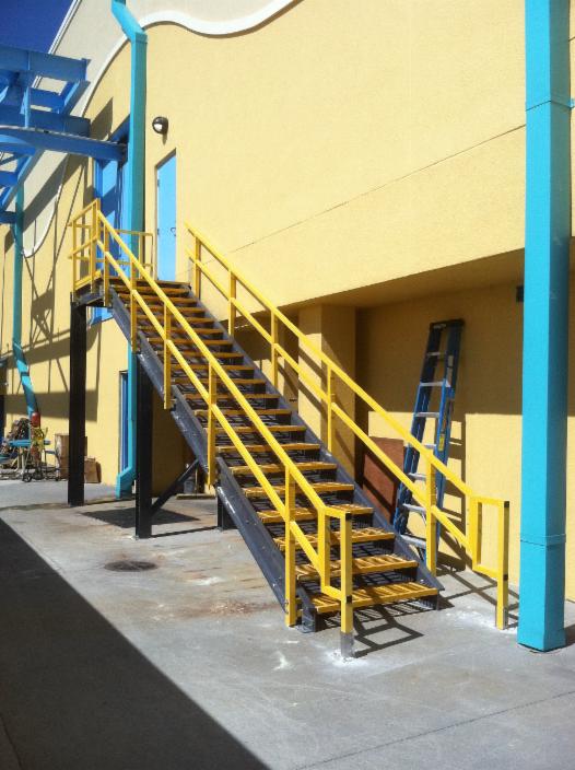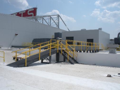 FRP Stairs and handrails link adjacent roof elevations at Delta Air Lines TOC.