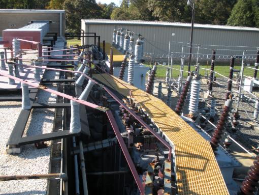 FRP Walkways atop power transformers at Eaton Corp. Cutler Hammer Division